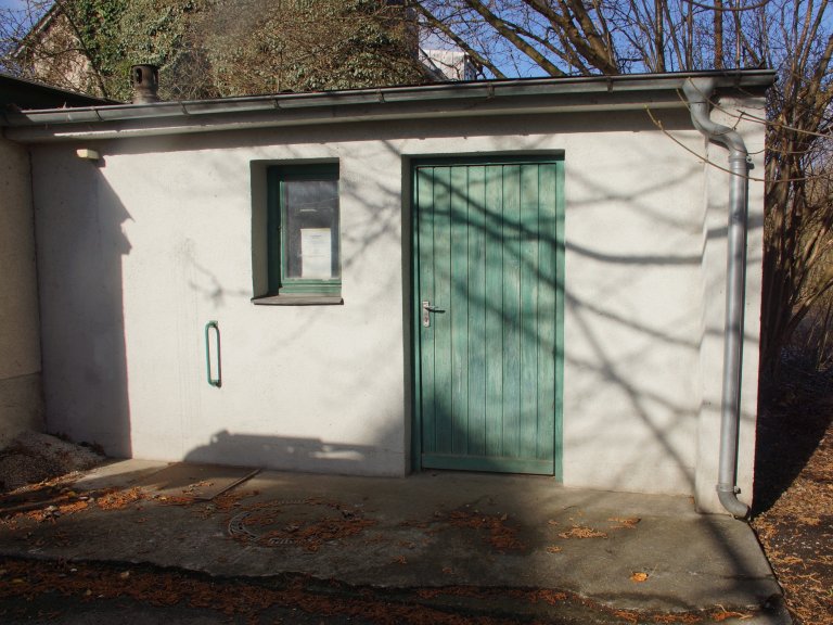 Eine unscheinbare Tür, hinter der viel Verantwortung steckt: Das Pumpwerk Fliederstraße, das 1963 erbaut wurde, hat zur Aufgabe, das Abwasser der sogenannten GAGFA- Siedlung um sechs Meter anzuheben und in den Hauptkanal zu pumpen. Das Einzugsgebiet erstreckt sich von Karl Stieler-, Nelken-, Rosen-, Flieder- und Veilchenstraße bis zum Siedlerfestplatz. Hinter der unscheinbaren grünen Tür geht es hinunter zur elektrischen Schaltanlage des Pumpwerks und weitere fünf Meter darunter zu den Pumpen sowie zum Auffangschacht des Abwassers.